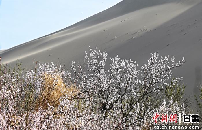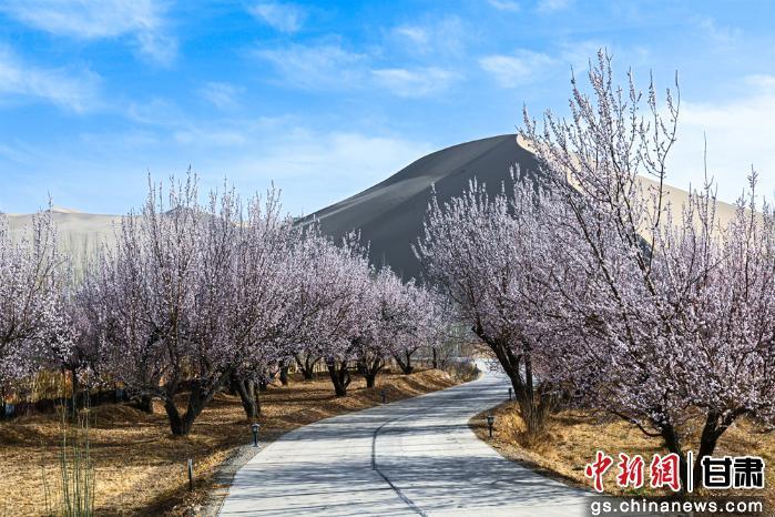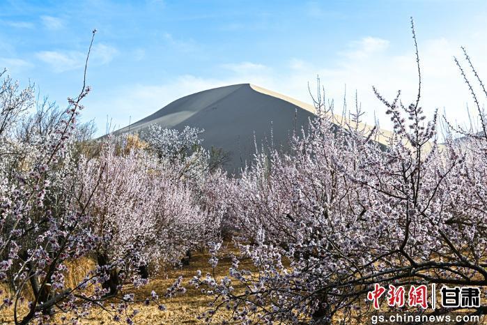 3月底,春风漫过敦煌鸣沙山的金色脊背,驱散大漠最后一丝料峭,月牙泉镇的千亩李广杏林,便循着季节的时序,次第铺开大漠独有的春日盛景。千亩杏林铺成粉白的云涛,黄沙、碧水、繁花交织,每一步都是不同的诗意构图。(王斌银 周玉玲)