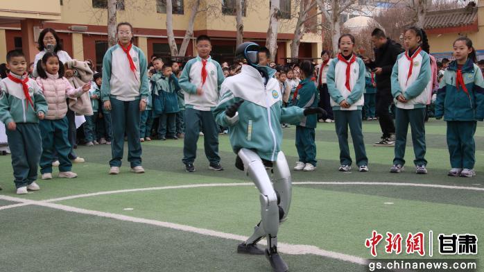 中新网甘肃新闻3月31日电 (何玉娜 张丽)3月底,敦煌市南街小学举办了“科技与艺术共舞,创新与梦想齐飞”机器人科普进校园活动。曾登央视春晚的宇树科技人形机器人惊艳亮相,为全体师生呈现了一场兼具科技感与观赏性的沉浸式展演。