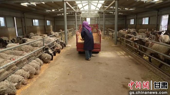 中新网甘肃新闻4月7日电(李登玉 马海云)走进天祝县东大滩乡上圈湾村的育肥示范点,标准化的羊圈宽敞明亮,一只只绵羊膘肥体壮,养殖户李春花正忙碌其中。听到填料的声响,原本散落各处休憩、踱步的羊群立刻围拢过来,低着头大口咀嚼着饲草,“咩咩”的叫声此起彼伏。