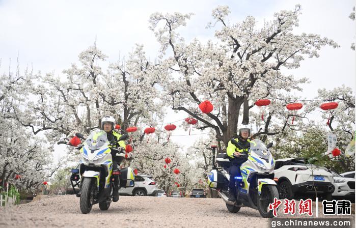 在这份春日的喧嚣与浪漫背后,一抹抹“藏蓝”身影穿梭于花影人潮之间,成为这片梨雪中最坚实的底色。为应对激增的人流车流,皋兰县公安局提前谋划、多警联动,以“水、路、空”立体化安保模式,全力护航“梨花季”平安顺畅。