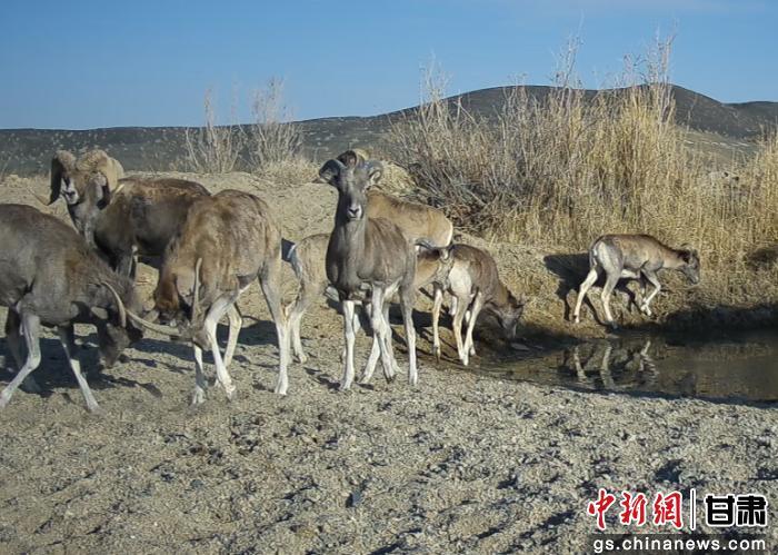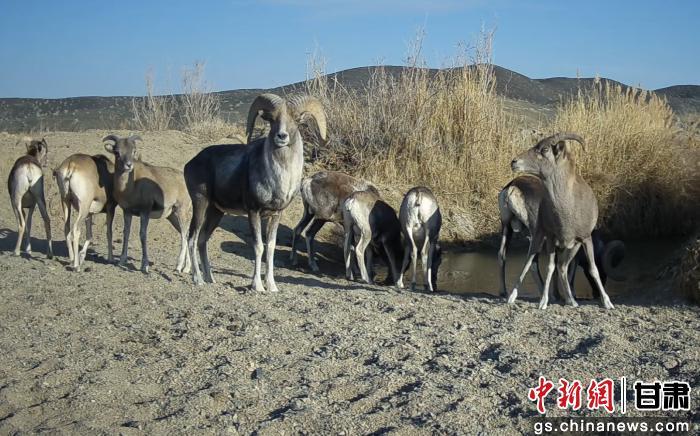 中新网甘肃新闻4月15日电 (吴敏 尚丽杰 徐媛媛)近日,甘肃安西极旱荒漠国家级自然保护区的工作人员在整理红外相机数据时,惊喜捕捉到一段“盘羊家族”同框饮水的珍贵影像,直观展现了极旱荒漠生态系统的良好恢复态势与野生动物保护工作的显著成效。