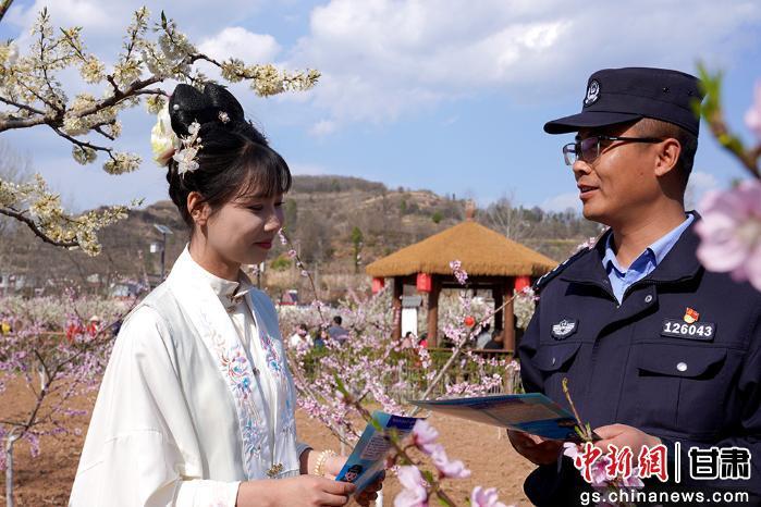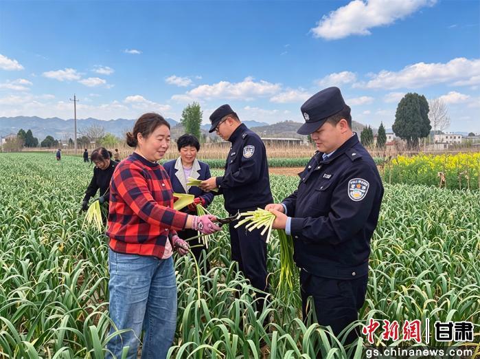 中新网甘肃新闻4月17日电(刘艳艳)仲春时节的陇南市徽县,李花似雪、桃蕊含香,蒜薹迎来成熟采摘的黄金时节。在泥阳镇的“桃李花开·福满乔王”赏春踏青活动现场游人如织,田间蒜农穿梭忙着采摘蒜薹,处处洋溢着春日的生机与劳作的喜悦。在这幅“半是芬芳半是安”的春日画卷背后,始终有一抹藏蓝身影守护在侧,比繁花更引人注目——他们用“田园警务”吟咏出一首平安与花香交织的春之序曲。