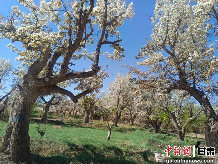 中新网甘肃新闻4月17日电(王兴全)4月中旬,漫步武威市古浪县大靖镇园艺村古梨园,虬劲苍郁的百年古梨树错落有致,枝头繁花盛放,为乡村田园勾勒出醉人的春日画卷,也让这片承载着乡土记忆的古梨园焕发勃勃生机。
