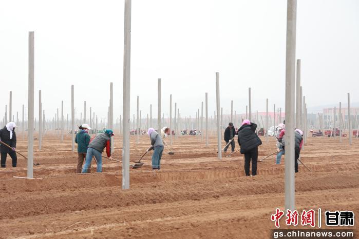 项目建设现场机械轰鸣、人声鼎沸,处处呈现如火如荼的建设热潮。干部群众分工协作、默契配合,放线打点、整地改土、扶苗定植、浇水围堰,各个环节规范有序、高效推进;技术人员全程驻守田间,手把手开展栽植指导,细致讲解技术要点,果农们学得认真、干得起劲,全员铆足干劲抢抓农时,一幅干群同心、兴果富民的生动春日图景在崆峒大地徐徐展开。