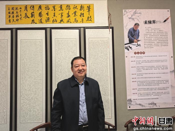 中新网甘肃新闻4月22日电(刘可)22日,甘肃省盐场路街道老年大学书法教师王继军在兰州举办个人小型书法展,共展出了他近几十年来各种风格的书法精品100多幅。